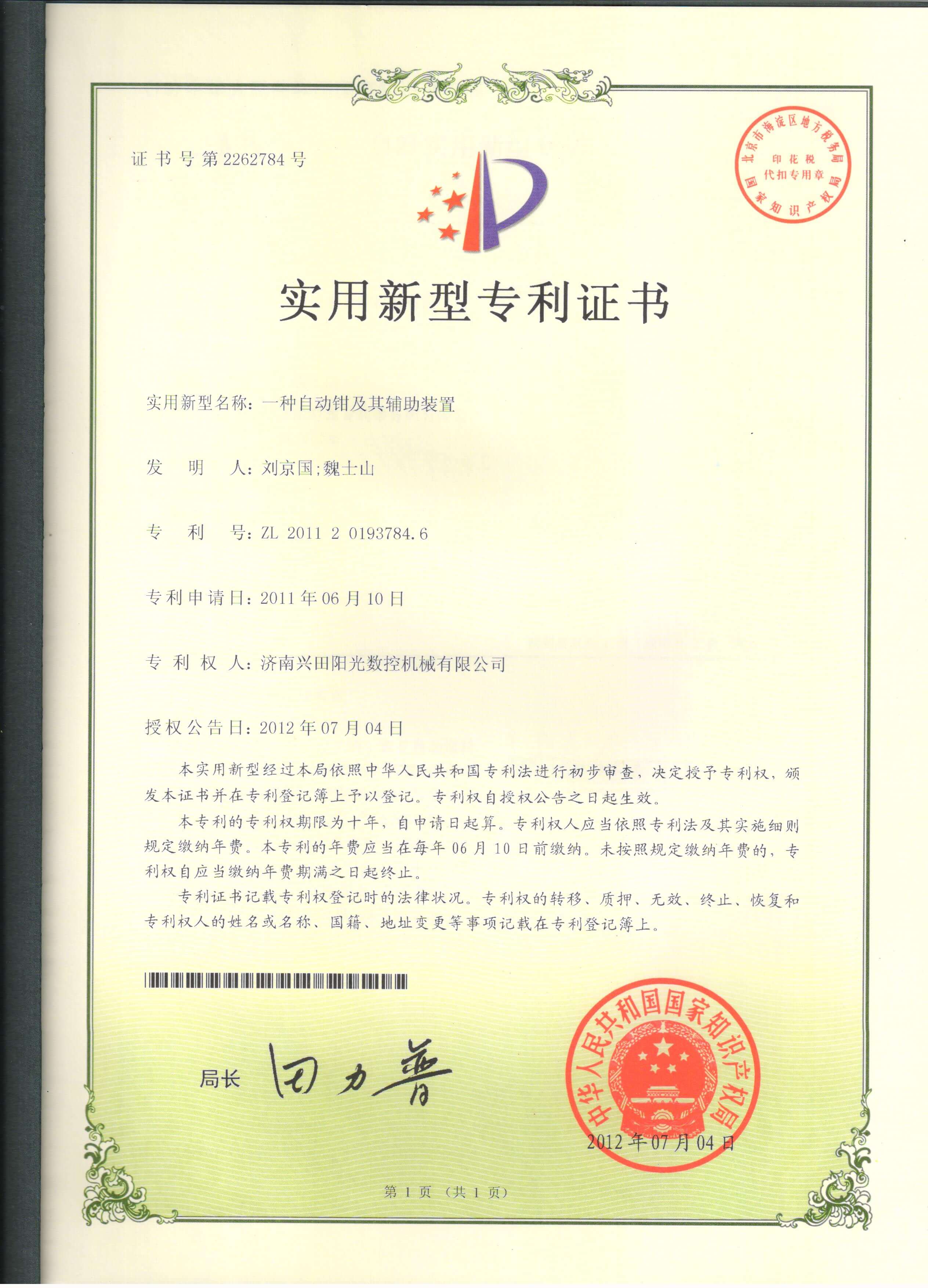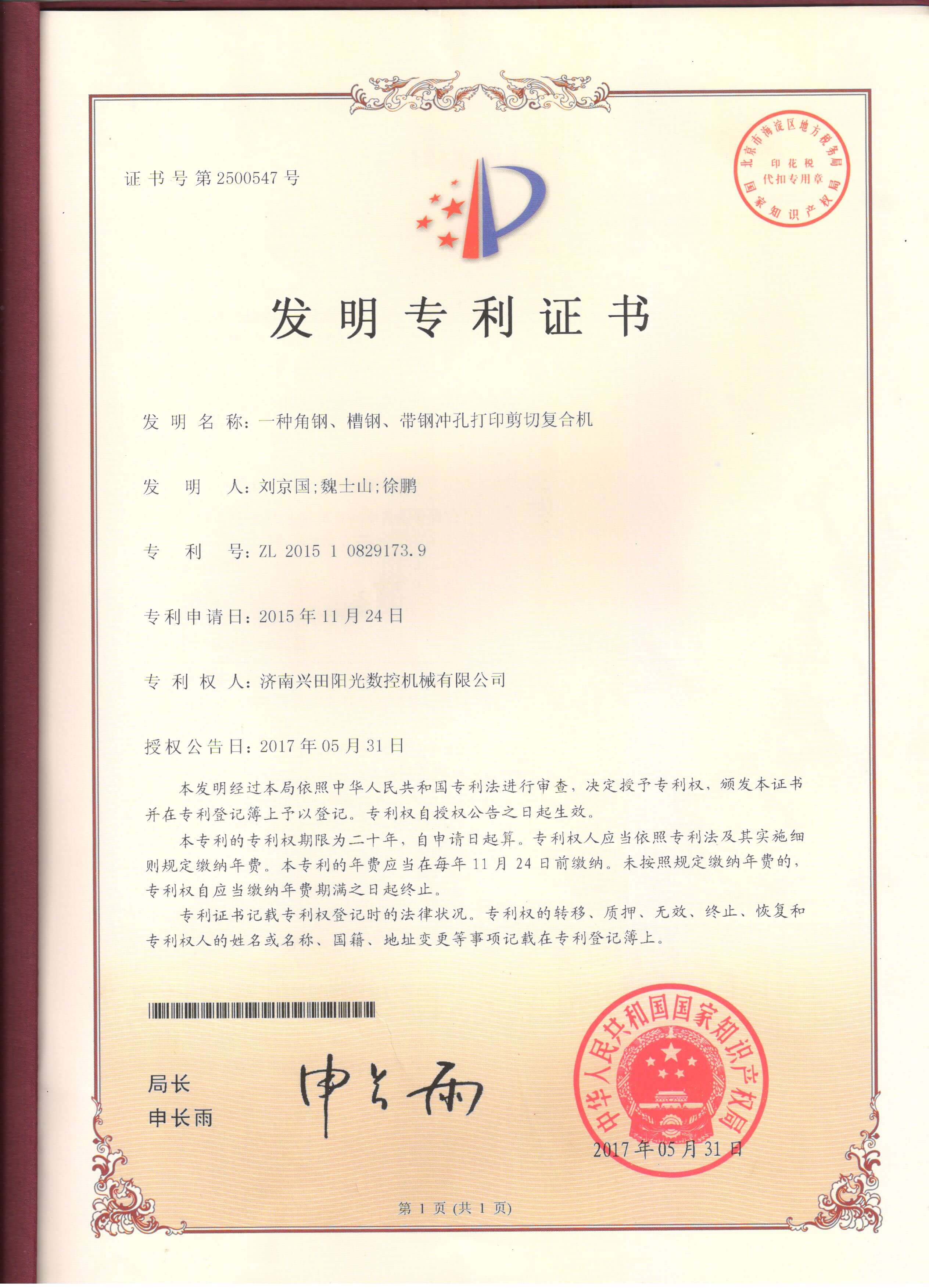 • 專利證書